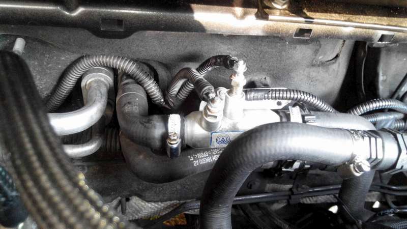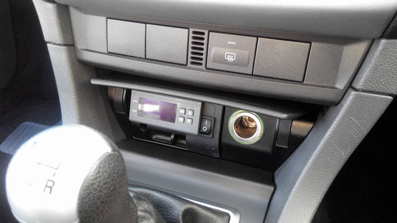 Ohrev vody konečne kompletný :) Venoval som tomu asi 3 dni, ale vôbec neľutujem. Pri terajších ranných teplotách okolo 5 stupňov je v kabíne teplo oveľa skôr... asi po 500 metroch je vzduch vlažný a po 2 km horúci. Najprv som chcel ovládanie relé napojiť len na spínač v kabíne, ale nakoniec som investoval do termostatu, ktorý si nastavím na akúkoľvek teplotu a o nič sa nestarám. Prikladám zopár fotiek s popisom.