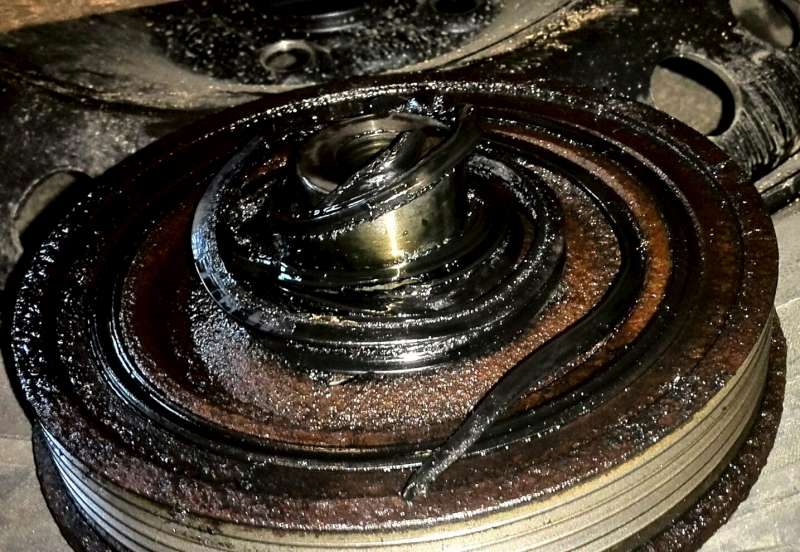 to vypada jakoby ten zbytek remene ponicil simering na klice a tudy zacal olej unikat ale nevim jestli by tudy slo tolik