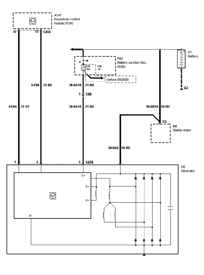 Na fórech jsem četl, že ford je vybaven "smart-charge" a toto zaručuje řízení nabíjení a dočetl jsem se, že by to mohl být drát od alternátoru (modré barvy), který jde přímo do řídící jednotky umístěné pod předním levým kolem. Všechno jsem rozebral a změřil, ale vadný drát jsem nenašel.
