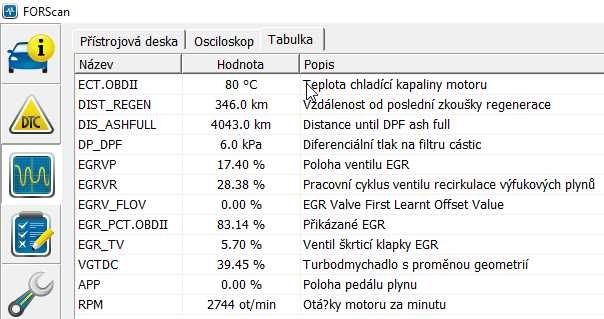 Teplotu výfukových plynů neznám. Jen vím jak se regenerace projevuje. Měl jsem půjčenou mini diagnostiku přes wifi a zkoušel kupu aplikací, ale nějak jsem nenašel aplikaci co by mi ukázala něco o dpf nebo o výfuku.