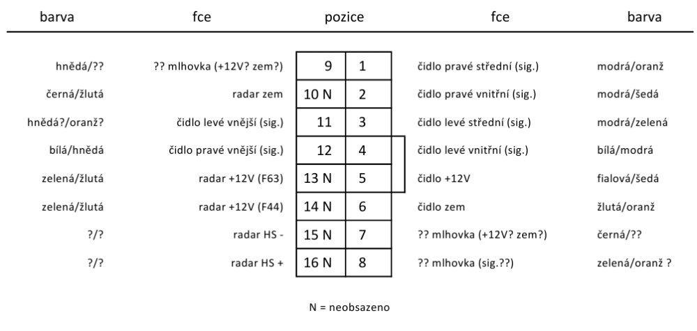 All: mohu poprosit o kontrolu a pripadne doplneni schema v obrazku? Minimalne ty mlhovky a predni cidla. U cidel samozrejme vim, ze ty "vnejsi" jsou bocni - pro automaticke parkovani.