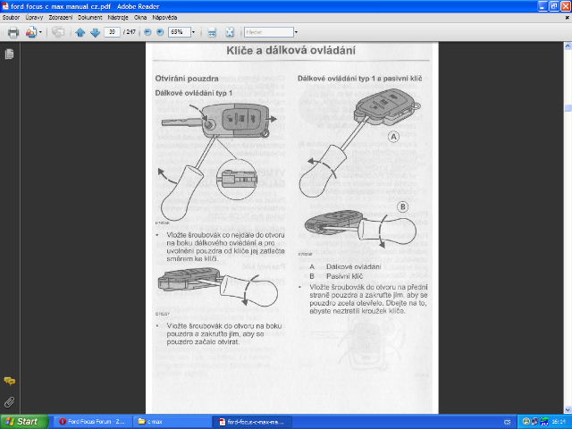 Pokud máš baterii CR 2032 3V po ruce,vem si menší šroubovák a podle obrázku rozloupni klíč a baterii fofrem vyměň.Musí ti stačit 10s,ale čím rychleji tím lépe.