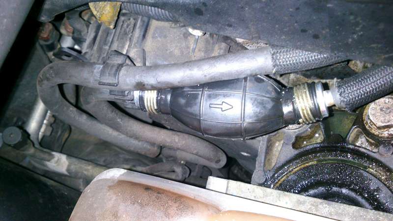 Nevím jestli se to dávalo do téhle motoráže standardně, ale jinak tomu říkám balónek na natlačení nafty. Jinak taky balonek na odvzdušnění nafty atd...