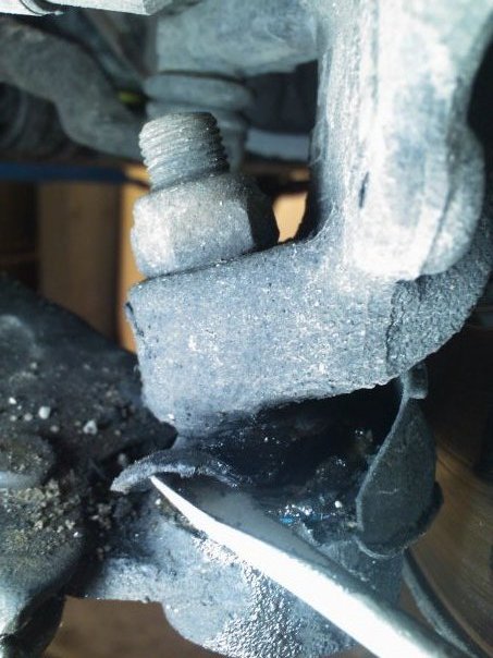 Zatížili jsme ale každé kolo zvlášť. Nejdřív pod LP kolo špalek a točili volantem, pak PP kolo a zase točili volantem sem a tam. V obou případech to ťukalo. Prachovky z tyček řízení jsme tedy dali dolu ale na kloubech jsme nenašli závadu.