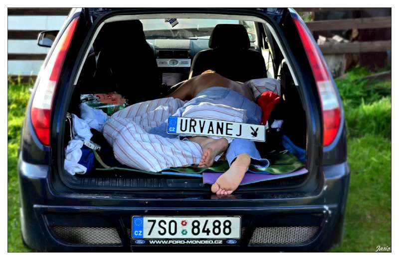 Přikládám jednu společnou fotku. Povšimněte si hlavně v popředí ležícího mladíka s pohárem - vítěze soutěže o alkoholika srazu