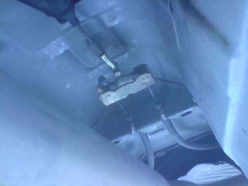 kdyz sviti kontolka tak je malo brzdovky v nadobce a pokud ti neco jako lanko visi vzadu u kola tak se musi vymenit lana , ale lano nejde do zadne nadobky , jde z brzdoveho trmenu po rameni a podel karoserie pod izolaci vyfuku .