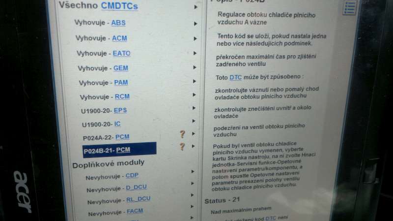 dalsi zkusenost s testovaným vozem , po dalsich asi 120km najednou auto zacalo cukat tak jsem to otocil u nas na kruhaci a vyjel na dalnici , pri plnem plynu to se mnou houpalo ze jsem pomalu nebyl schopen udrzet telefon abych to natocil , v intervalech cukani to i cerne kourilo a potom na chvli problikla kontrolka motoru , kdyz jsem to nacetl , tak dve chyby klapky obtoku vzduchu . nasledne za 5km zase pokus o regeneraci .