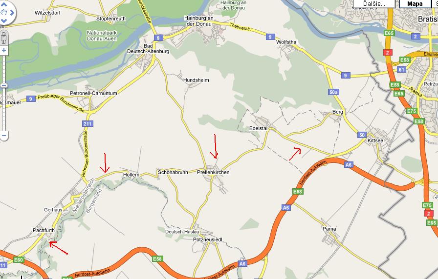 Cestu by som radsej zvolil spodom - Hainburh byva kolona (semafor pri vezicke) a tento tah byva plnsi ako spodok. Dajte vediet.