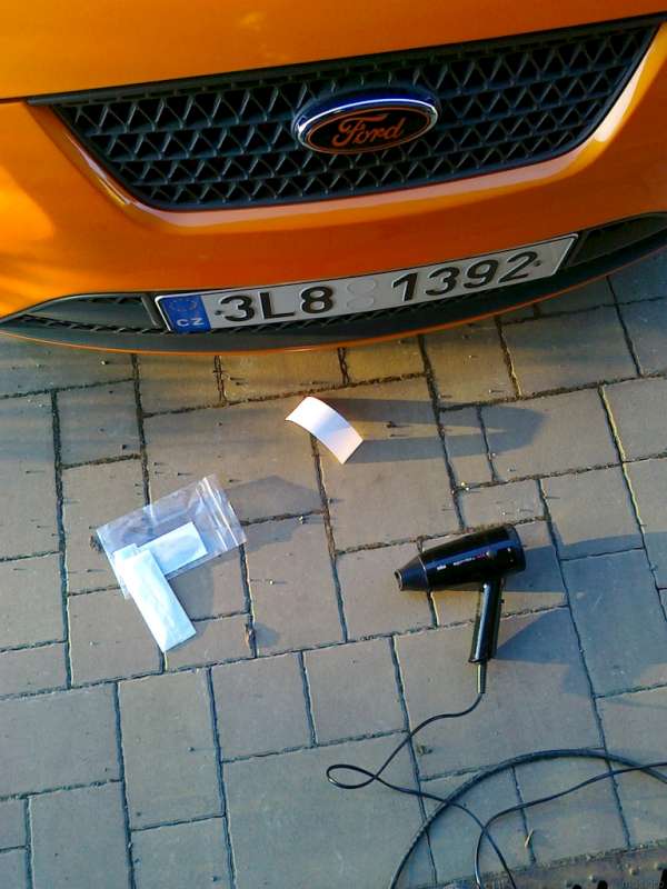 Pouze jsem původní znak očistil a odmastil technickým benzínem, nový znak jsem nahřál pořádně fénem až hezky změkl a pak nalepil.