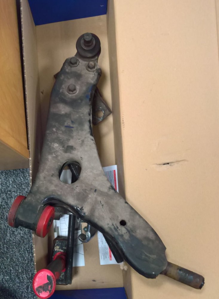 Myslim že to je vidět i na tý fotce - když prodloužíš osu předního silentbloku, tak nejde do osy zadního (tý tyčky) ale ca o centimetr vedle a ta tyčka je i ohlá těsně za ramenem = to rameno je ohlý na 99% Uvidíš až to porovnáš s novým... Pak po smontování uvidíš jeslti je ohlá i nápravnice, nemusí být ale může i když deformace nejsou na první pohled vidět - musel bys to proměřit, milimetrová deformace okem těžko uvidíš a milimetr se na delším rameni projeví v centimetrech....