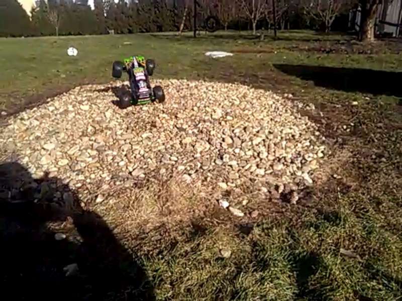 Taky jezdíme. Traxxas grave digger 1/16 motor 550 2x lipo. Pořád se to zvedá na zadní...
