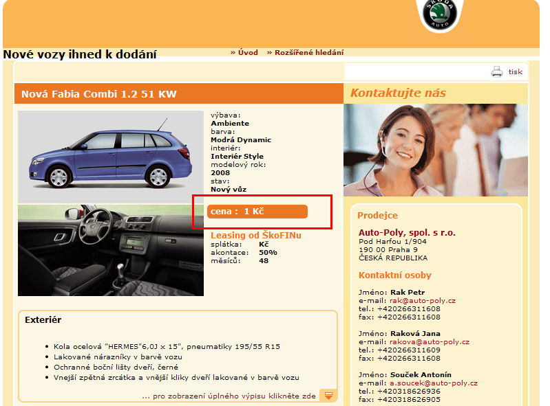 (Než to opraví - je tam Nová Fabia Combi 1.2 51 KW, cena : 1 Kč. Myslím, že tu 50% akontaci bych i utáh