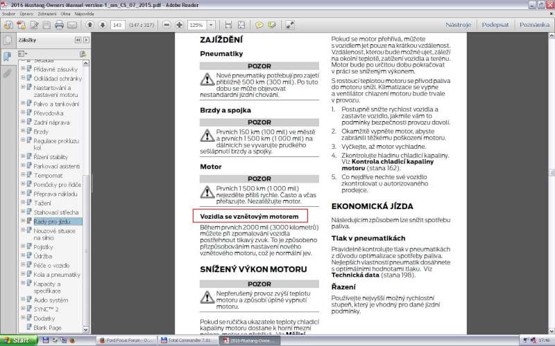 Toto najdete v návodu k obsluze Mustangu 2015: