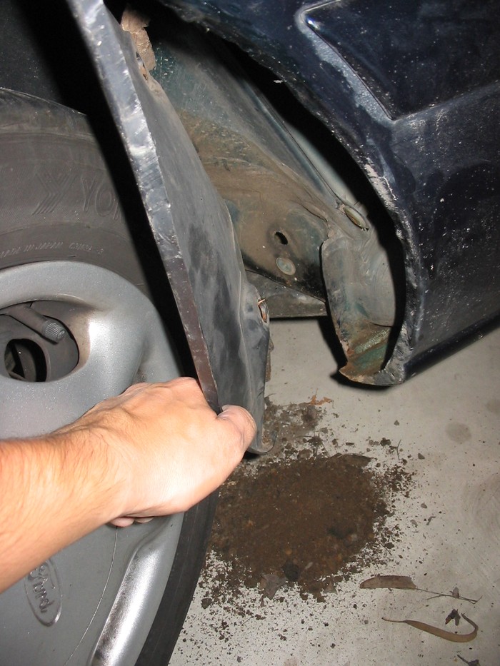 Kdysi (podzim 2005) jsem něco podobného řešil u Escorta, kde ten podběh byl opravdu odfláknutý a sbíral se tam bordel fakt intenzivně. Hrál jsem si s tím několik dní a zkoušel různé zástěrky, až jsem si udělal vlastní "megaplácačky" na míru. Bylo to však pozdě, korozi prahů (10 leté auto bez pozinku) už bohužel nešlo zastavit. Pro pobavení přikládám fotky, co jsem ještě vyhrabal...