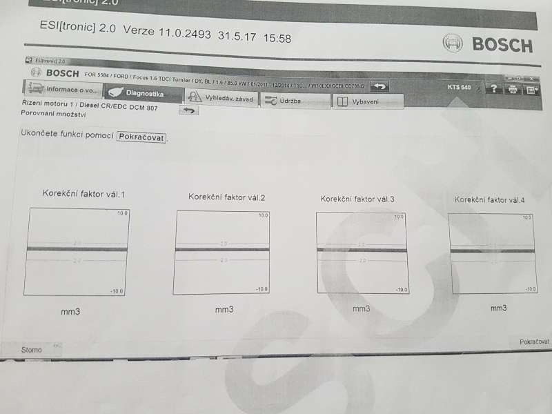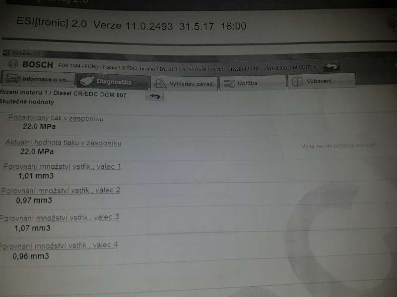 Tak já jsem se právě dostal k tomu, že sem umístím tři fotky protokolu z autorizovaného BOSCH Diesel servisu, kde jsem se dozvěděl, že autu NIC není. Vstřiky i tlaky ve válcích + hlavním válci jsou naprosto v pořádku. Opravdu už nevím, co způsobuje to dunění za studena, než se motor ohřeje! Napadá mne snad už jen hlavní čerpadlo.. Nebo nevím.. A ty vibrace jsou nahodilé. I za tepla to prostě občas zavibruje, chvíli to blbne a pak se to ustálí.. Otáčkoměr je klidný. Okem nevidím žádné odchylky. Včera, v tom vedru jsem ale učinil objev. Nastartoval jsem a rovnou zapnul klimatizaci (mám digiklimu) a ejhle. Jak se tím trochu zvedly otáčky, tak byl klid! Nic nedunělo ani nevibrovalo.. A dneska zase vše na novo.. Asi spáchám sebevraždu