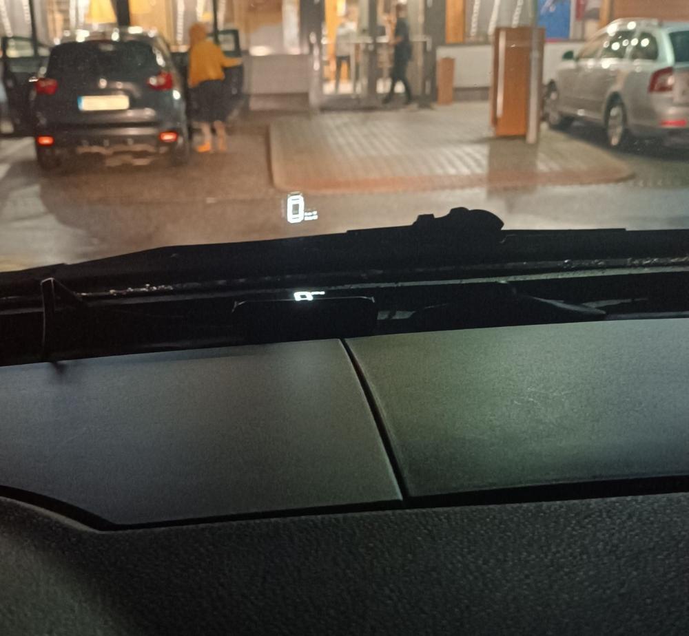 Přikládám nic moc fotku, kdy se to odráží jen v čelním skle. Dvojité kontury v důsledku vnitřní a vnější plochy skla. V pohodě čitelné, rušivé částečně. Je k tomu samopřichycovací a zasesundavací fólie na sklo, která je matná a odstraní ty dvojkontury. Teda- částečně. Je to výrazně lepší, ale jsou tam pořád. Nicméně- pokud problém přímo na sklo je 100%, s fólií to klesne tak na 30%. Ale přilepit tu fólii do správného místa na okně není easy. A posunutím sedačky se to asi celé pohne.