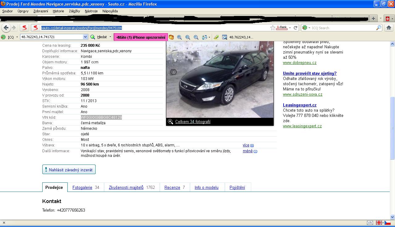 akorat by jsi mel zacit neco delat protoze cas bežíkimi píše:Tak přátelé dneska jsem projížděl kolem bazaru kde nabízí Mondeo na kterém toto vlákno začalohttp://sauto.cz/detail-inzeratu/osobni/ford/mondeo/9409376 . Auto tam stále stojí, ale chodil kolem něho nějaký mladý páreček. A ejhle on to kamarád se svojí přítelkyní. Hned jsem to zabodnul na parkoviště, které je o kus dál a chvilku jsem čekal. Když jsem je viděl odcházet hned jsem mu volal a ptal jsem se ho na to auto atd. Domluvily jsme se a zašli jsme na kafe a já mu to tam pěkně všechno řekl jak se to má byl z toho docelaa moc mi nevěřil tak jsem ho odkázal na toto vlákno a před chvilkou mi volal zpět že toho borca zabije, že to skoro koupil prej už pomalu složil zálohu
