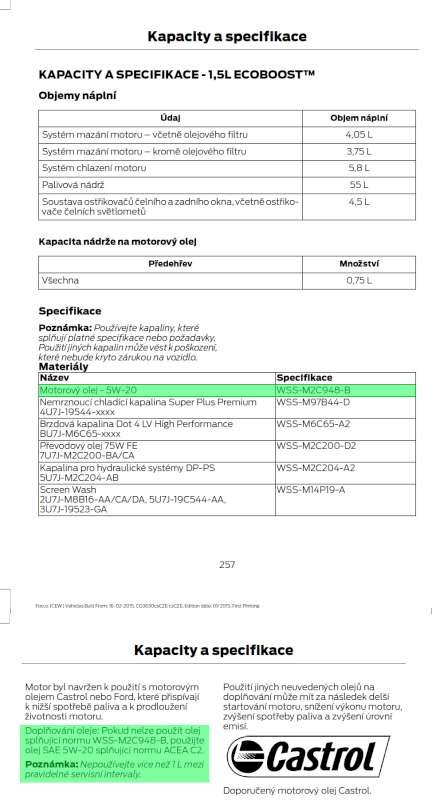 V uživatelské příručce, která byla platná do 15/02/2015 byl uváděný olej pro 1,5 EB - 5W30 a v novější od 16/02/2015 už je jen 5W20: