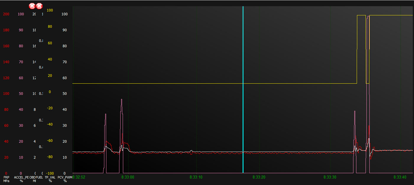 rád bych se zeptal na vaše hodnoty tlaku ve vstřikovacím systému a především v plnícím tlaku turbodmychadla při zátěži motoru (2,0 tdci 98kW bez DPF). Po zprovoznění diagnostiky (díky za návod zde na fóru) pomocí ELM327 a několika programů (v tomto případě ForScanu) se mi podařilo zapnout si oscilogram a koukat (jen po očku) při jízdě na hodnoty senzorů. Můj problém spočívá v nedostatku kroutícího momentu motoru a celkově línějšího projevu, dále zvýšené hlučnosti a vibrací v nižších otáčkách, nicméně bez zvýšené kouřivosti apod. Ještě před zimou při maximálním plynu auto už od 1500 ot. vystřelilo vpřed (pěkný zátah do sedačky se konal pravidelně), nicméně nyní tahne dobře prakticky až od 3tis. ot. Spotřeba mírně stoupla (na cca 6,5l dle PP), kouřivost se nezvýšila, nicméně autíčko je prostě líné.. Provedl jsem rekalibraci polohy EGR, žádná změna. Výměna paliváku + oleje s filtrem + vzduchovým filtrem taktéž nic. Kontrola hybnosti VGT na turbu provedena - hýbe se (dále ovšem nemám jak otestovat). Proto mě zajímá v čem by podle Vás bude s největší pravděpodobností problém. EGR měněno cca před dvěma lety, turbo velmi pravděpodobně původní (260t. km. najeto, nicméně bez většího nánosu oleje v sání), vstřiky + čerpadlo taky původní. Od koupi (minulý rok) meněn olej vždy po 10t. km společně s filtrem... Nafta prakticky vždy s adivitem.