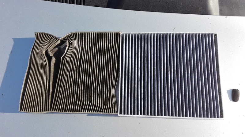 Měl jsem 500ml pěnu a kdyby bylo ještě o trochu více, tak by se určitě užila. nacpal jsem to všude kam to šlo. přímo do prostoru filtru, od spolujezdce do té trubky, do všech průduchů. Jen kaslík už jsem nesundaval, abych to fouknul i tam. Přikládám fotky z místa kabinového filtru + jak filtr vypadal po vyndání. Nestačil jsem se divit, když jsem viděl, jak tam byl ten filtr zdeformovanej od minulého servisu. Fakt si radši co člověk dokáže doma udělá sám. Takhle to vypadá, když to dás do servisu, když mu fakt věříš, že to dělá poctivě. Filtr samo bez uhlí a ze známosti za 300 bez DPH. :evil: Ja dával od Bosche s uhím za 300 s DPH. To abych se začal obávat co všechno má jakou kvalitu, za tu dobu, co to k němu dávám.