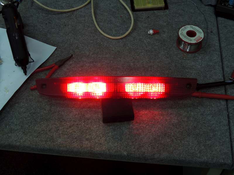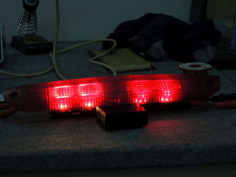 . Takže nic moc energeticky ideálního, každopádně oproti 370 mA odběru žárovky je to i tak rozdíl. A zdá se, že to svítí dost. Ještě to vytuním těmi transily a půjde to do 3. brzdového světla. Pak vyfotím i porovnání s žárovkami.