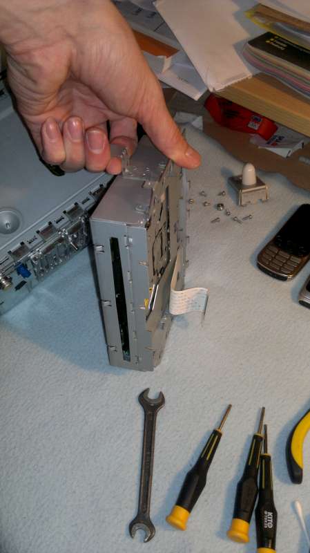 Tak jsem to rozdělal a zjistil, že mechanika je uplně samostatně vedle rádia viz fotky. Mechaniku jsem vyčistil, byla zasraná jako prase. Jenomže teď už se potřetí vracím z auta, asi jsem tu mechaniku někde blbě dotáhl, protože se teď blbě pohybuje- netočí se, těžkopádně tam leze DVD. A nemůžu přijít na to kde:-D