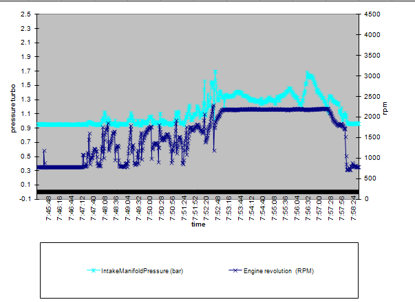 Jizda byla jen testovaci, chtel jsem videt jak funguje turbo. Jestli plni a jakým tlakem. Nekde jsem tu cetl, ze plnici tlak by mel dosahovat hodnot az 2.5 baru.