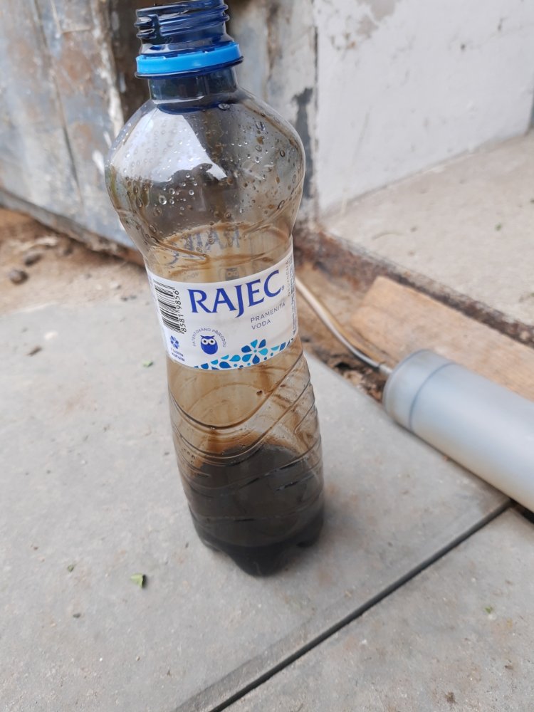 Přístup špatnej, s tou hadicí se téměř nedalo hnout. Takže jsem odsával poslepu a určitě ne všechno.