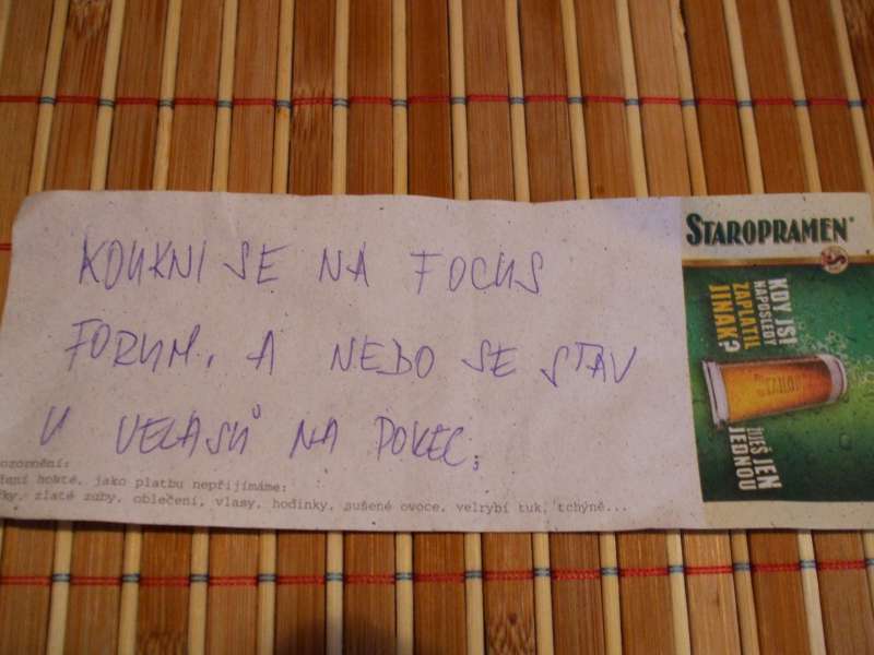 Dnes po práci jsem za stíračem svého fofíka našla vzkaz, za terý děkuji, ale je bez podpisu, tak nevím komu se mám omluvit, že do hospody sama nechodím.