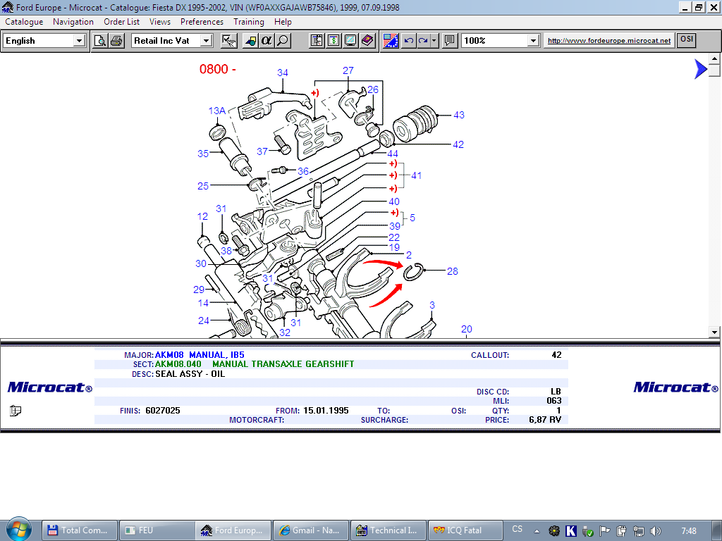 Doufám že dávám příspěvek do správného vlákna, ale vhodnější pro svou závadu jsem nenašel. Na autě (Fiesta, převodovka IB5 stejná jako u FFI) mi teče převodový olej (spíš jen sákne, přes noc to udělá mikroloužičku) z místa kudy jde táhlo řazení (snad se to tak jmenuje, v TIS je shifting rod). V Microcatu je namalované těsnění s FINIS 602725. Měnil jste ho někdy někdo? Co to obnáší? Rozpojit tyč, vyšroubovat koncovku, sejmout manžetu, vydloubnout těsnění, slejt olej, nasadit těsnění, vše vrátit zpátky a inspekčním otvorem vrátit olej a dolejt stejným olejem až po rysku? Nebo se dolejvá odměrkou předepsané množství?