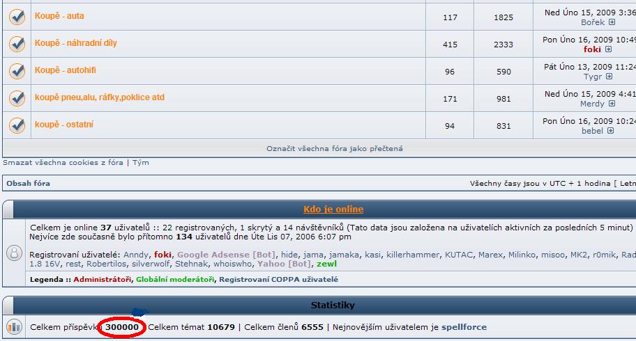 Před chvílí jsem vyhmátl 300 tisící příspěvek :!: :idea: Shodou okolností to vyhrál Foki :lol: Gratulace šéfe :!: