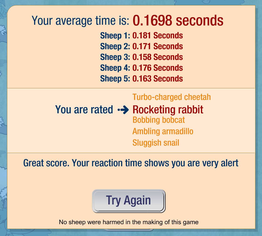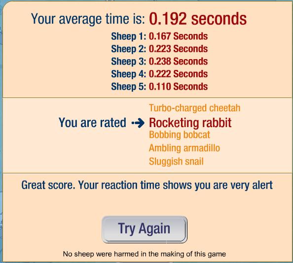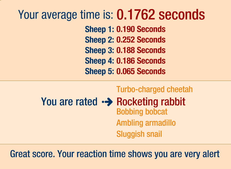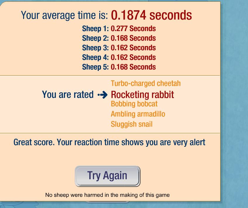 Otestujte si váš priemerný čas reakcie. Cakajte kym vybehne ovca a klik na sipku...