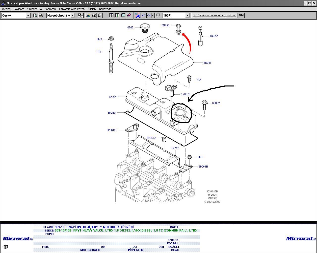 foto nemam a dnes jsem byl u forda a samostatne to neprodavaj jen z celim vikem cena 3400 jen kvuli kusu plechu je to nejakej pojisnej ventil kvuli tlaku kdyz to nepobere sani ten pretlak tak to vyrazi tu zatku normalne mi primrzli hadice od odvetrani kliky a ventilů a kdyz to povolilo tak to tlakem vybehlo je to kulate viko ze zhora na prave strane vika ventilů ze predu hadice z odvetrani a ze zadu hadice zpet do sani pokusim se udelat foto zitra