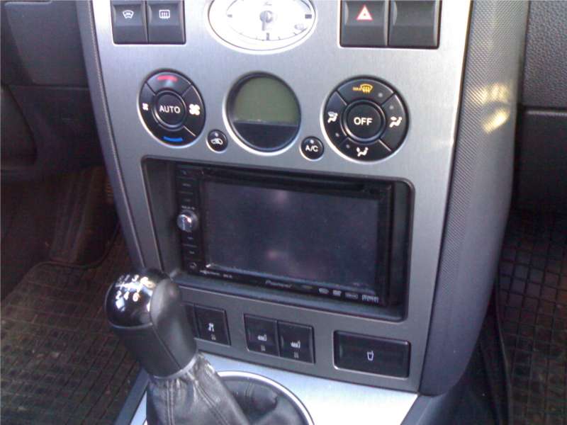 rozhodl jsem se, že také přiliji trochu nafty do ohně... Takže, do mondea jsem chtěl za každou cenu vestavěnou navi, neboť nenávidím válící se kabely od navi, která je nalepená na čelním skle (ó fuj!). Pořídil jsem si Pioneer avic D3 (15000CZK via aukro), jenže po vyndání origo 6006CD mě čekal šok v podobě zjištění "proč to tam kurva nejde?!". A tak následoval týden přemítání o tom, jak to tam dostat, v pátek jsem kompletně rozebral středový panel, zjistil, že si musím vytvořit i vlastní uchycení raádia, neboť originální "rack?" určený pro pijonýra byl do mondyho prostě velkej, musel jsem si koupit redukce z fordí kabeláže na pijonýří kableáž, švába, s kterým se origo ovládání pod volantem nestane nepoužitelným atd. Následovala úprava krytu panelu, musel na výšku zvětšit - to jsem provedl vyfrézováním horní a dolní lišty držící origo rádio před zajetím dovnitř, vše začistit, vyhladit, vyleštit plast a hurá do auta (v sobotu kolem třetí ráno