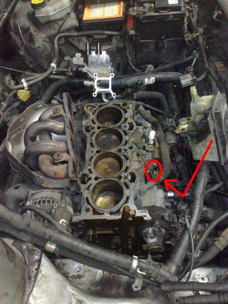 Když jsem včera vypouštěl z chladiče ten hnědý humus, zjistil jsem, že mi k tomu ještě z motoru teče celkem slušně olej.Pod parohy sání, někde blízko termostatu, viz obrázek (ten je, když byla dělaná ta hlava, jiný jsem teď nenašel). Vršek motoru je suchý,ventilvíko to není. Je tam blbě vidět, parohy budou muset ven. Dle obrázku z MC by tam měl být odlučovač oleje, tak jsem zvědavý.