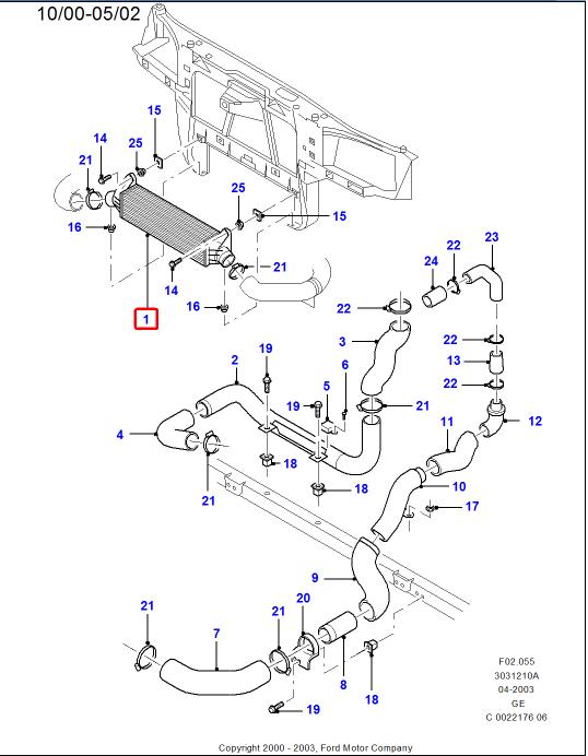 Zdravím ve spolek. Máme Mondeo rv. 05, motor 2.0 16V TDCi 85 kw. Praskla hadice od intercolleru do saní - při pohledu zepředu na auto ta vlevo - jde za chladičem. Zatím jsme to vyřízli a nahradili nasponkovanou trubkou. Ale rád bych jí nahradil, zato co tam patří... Kolik může stát origo u Forda...? A ještě jeden dotaz - existuje nějaký elektronický katalog dílů - něco jako ETKA u VW/Audi/Skoda/Seat...?