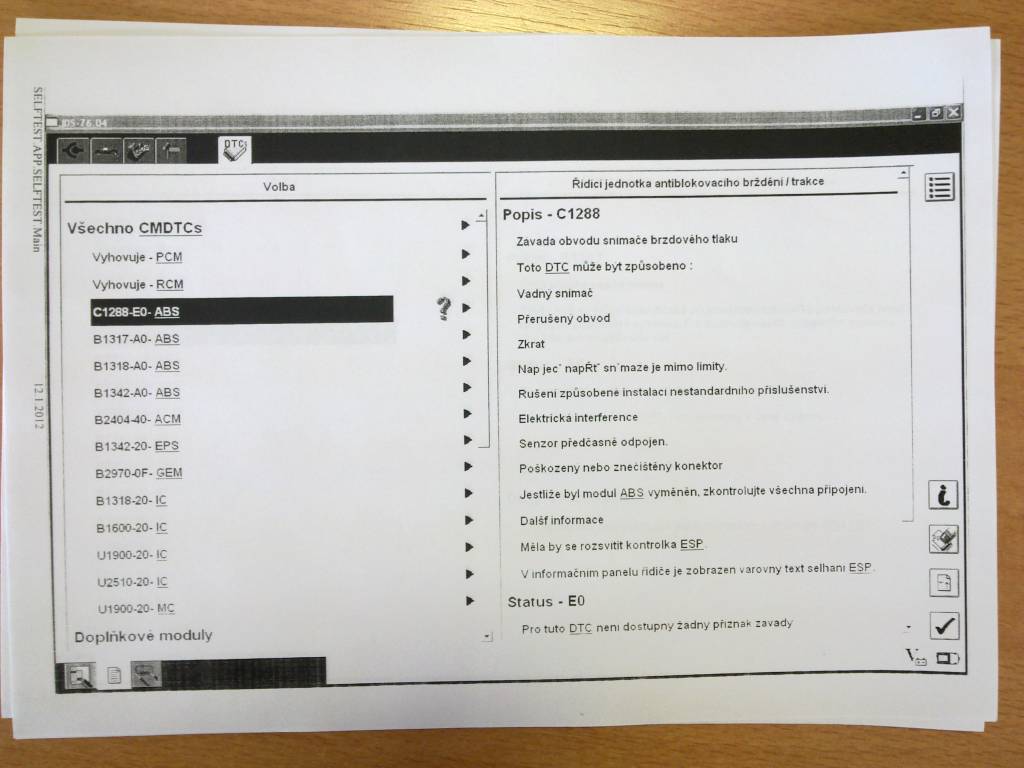 Auto nijak neblbne, nic netuka len svieti kontrolka a pise ESP system fault