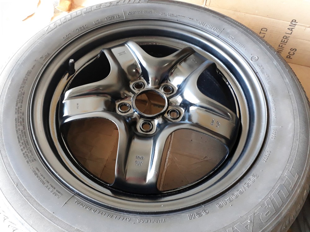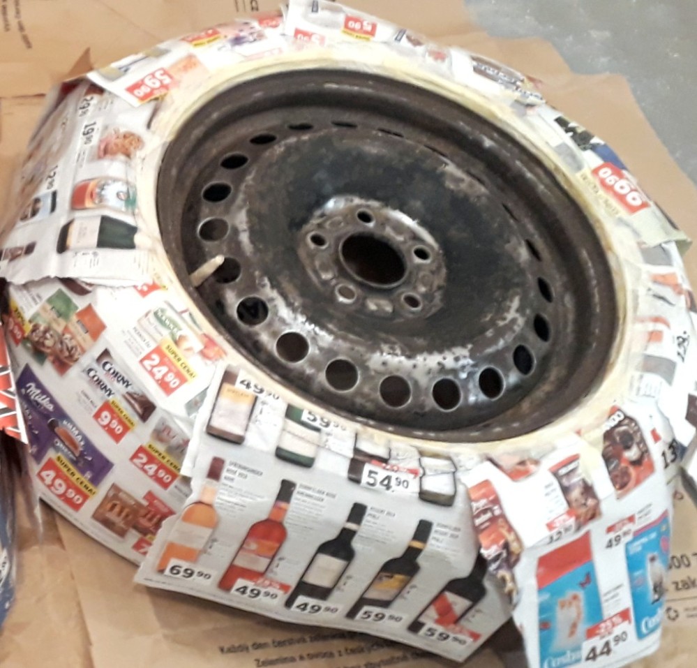 - výchozí stav disků byl mnohem lepší, než v případě těch zimáků, co jsem stříkal na stříbrno, takže i výsledek je mnohem lepší (nebylo potřeba vyrovnávat velkou drsnost způsobenou masivní korozí)