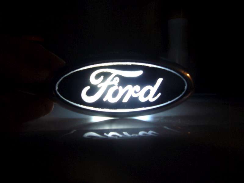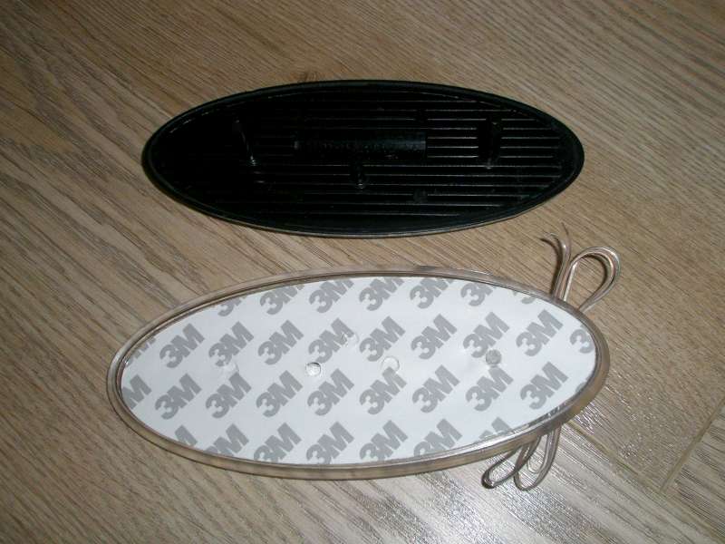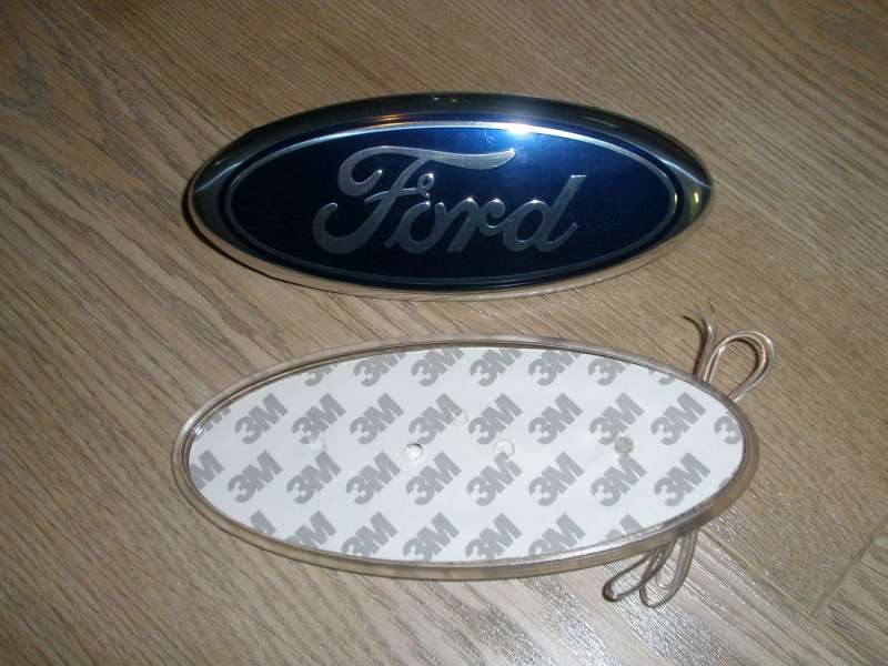 Narazil jsem na diodovou podložku sloužící k podvícení zadního znaku na Mondeu a Focusu. Objednal jsem bílou a trochu zakutil. Nejprve je nutné sundat původní znak. Nejlépe je vzít vlasec, navázat ho třeba na dvě tužky kvůli úchopu a zasunout za znak. Znak samotný je stříbrný a drží na takovém černém plastu, který je maličko vidět, nutné je vlasec zasunout až ke kastli za ten černý plast. Pak je nutné celý znak vlascem odříznout - ze stran, zhora a zdola. Pak už by měl jít vytáhnout, v karoserii je alespoň u FF 2009 na třech plastových tyčkách (vidět je to na foto). Jakmile je znak dole je nutné očistit jej od původní lepící folie a odříznout z něj ty tyčky co jdou do kastle, nejlíp plátkem z pilky na železo (podložka v sobě nemá otvory). Pak očistit samotný znak, odmastit a nalepit na podložku ze strany, kde není kabel. Důležité je si dát pozor na vycentrování - při lepení je jen jedna šance, jakmile se znak jednou chytne, těžko se odlepuje. Podložku s nalepeným znakem si pak položte za zadní stěrač, odmontujte jedno ze světel nad SPZ a kabel ze znaku protáhněte jednou z děr po původním znaku a vytáhněte ho dírou pro osvětlení SPZ. Pak už stačí připojit na konektory ke světlu - měděný kablík patří na oranžový kabel vedoucí ke světlu. Při nastartování poznáte jestli jste to zapojili správně, jinak je třeba kabely prohodit. Pak už jen stačí přebytečný kabel zasunout dovnitř dveří, strhnout ochrannou folii a znak opatrně nalepit na předem odmaštěný povrch na původní místo.