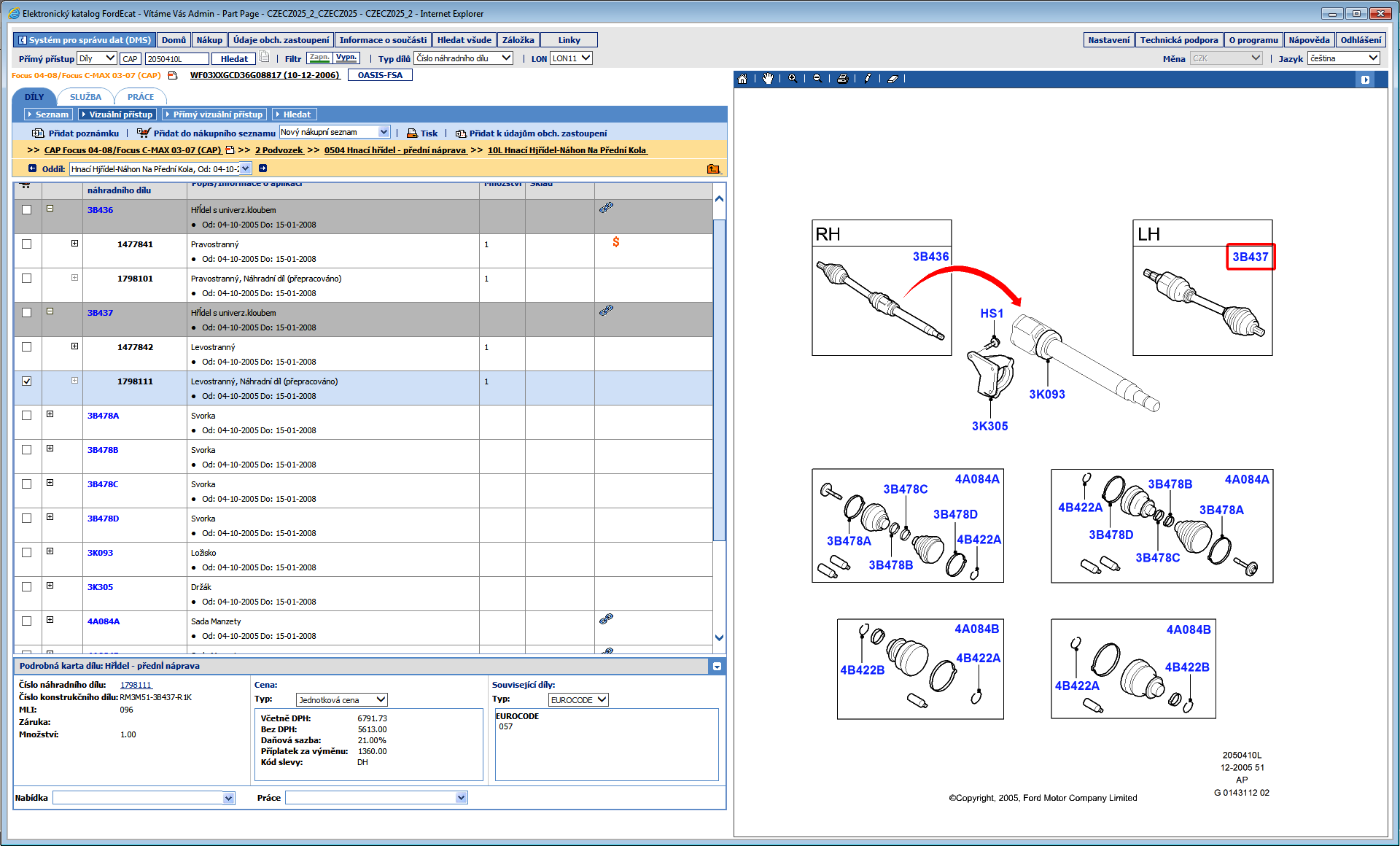 To máš nějakou divnou cenu..., repas ve stejné kvalitě jako nová od Fordu (jsou vyměněné klouby) se prodává za 251Euro/kus (Levá 1798111 / Pravá 1798101) a nové 558Euro Levá 1477842 / 669Euro Pravá 1477841....