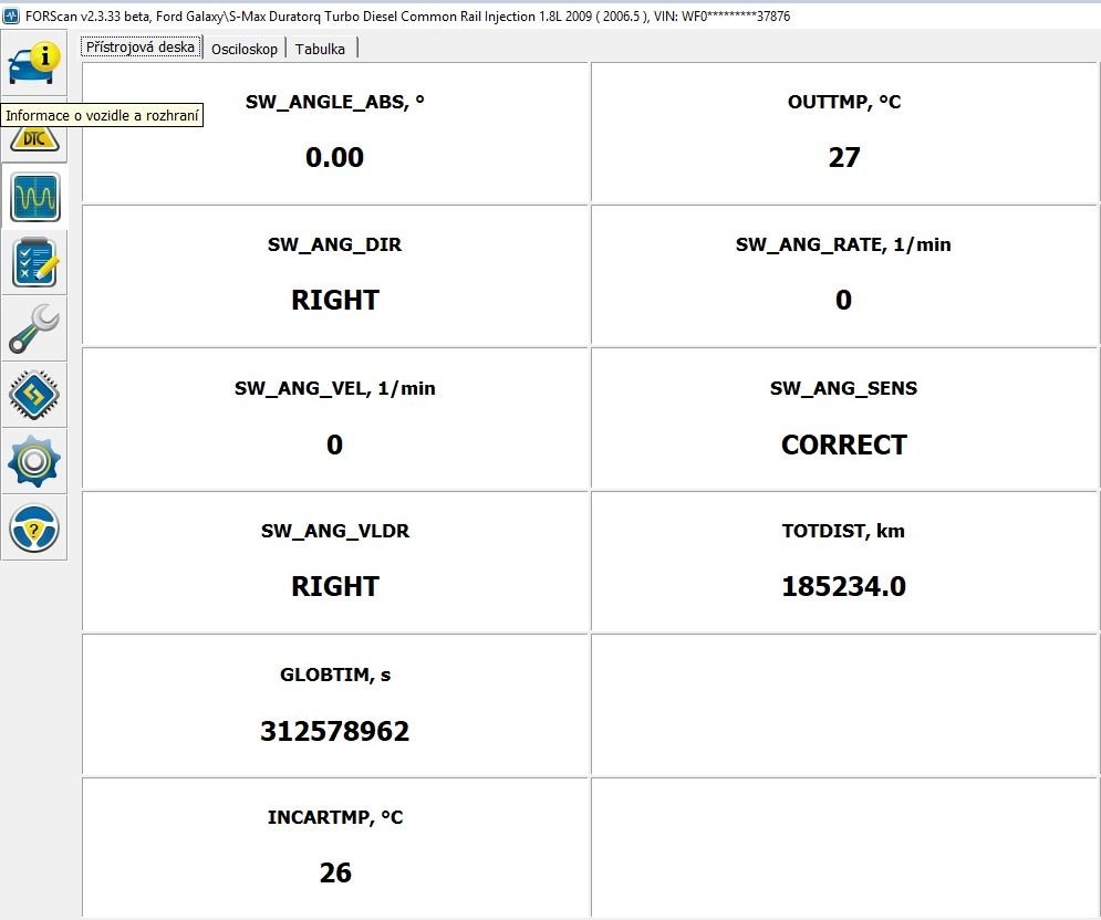 Při svítící kontrolce jsem live data zkoušel a myslím, že podle ní byl volant pořád napravo. Po úspěšné kalibraci zhasla, ale po cca 20 km se rozsvítila znovu. Zkalibroval jsem znovu a teď je cca 100 km klid, tak uvidím.