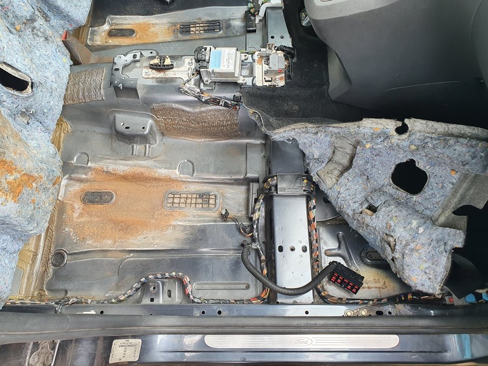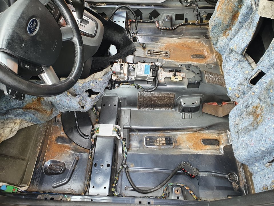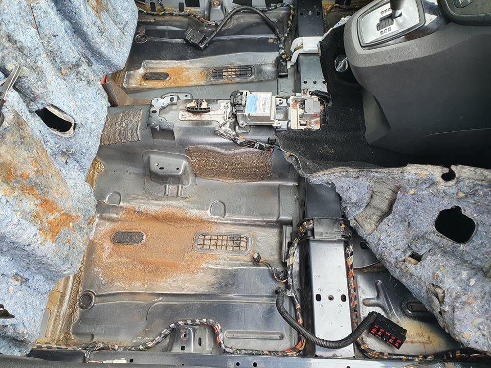 snimac zrychleni - pod sedadlem spolujezdce, pod kobercem, prisroubovane k traverze