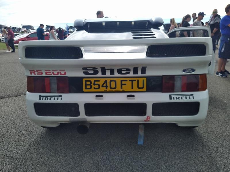 Šli jsme se dívat dále, procházeli jsme úsekem, kde jsou stánky s různým zbožím, na co si jen vzpomenete, od suvenýru až skoro po motor. Po chvíli chůze se před námi nachází Sierra RS Cosworth Saphire a o kus dál první Ford RS200. Tento RS200 byl zajímavý tím, že krom dílů, ze kterých Ford skládal tohle monstrum, respektive co leželo na skladě to se vzalo a použilo - viz. stejné přední okno, dveře, zadní lapmpy ze Sierry, tak měl ještě i palubní desku ze Sierry - moc se takových nevidí - bohužel víc informací jsme o něm nezjistili, ale jak jinak než že byl na značkách.