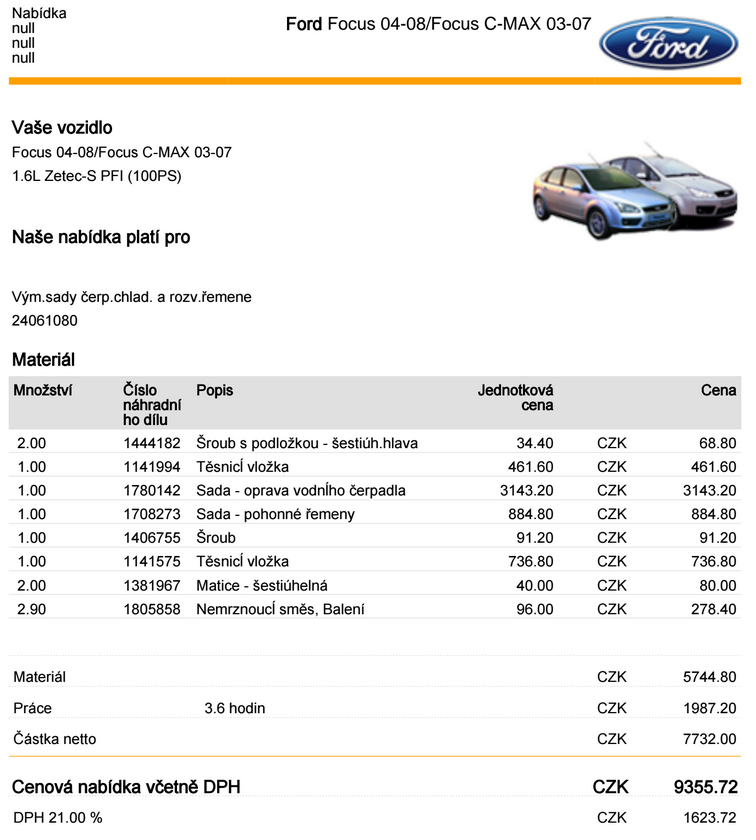 Pozadal jsem o cenovou nabidku ve Fordu pro auta starsi 5 let (-20%)