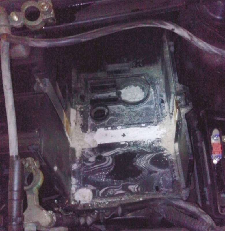 Po vytažení staré baterie mě překvapilo, že tam na dně plastové schránky bylo velké množství šedobílého prášku. Prý je to produkt oxidace elektrolytu, který vzlíná při dobíjení baterie. Protože měla baterie servisní otvory, kontroloval jsem elektrolyt a za její životnost jsem dolíval destilovanou vodu asi 3x (do každého článku tedy celkově cca 3x10ml). Viděli jste u sebe něco podobného ?