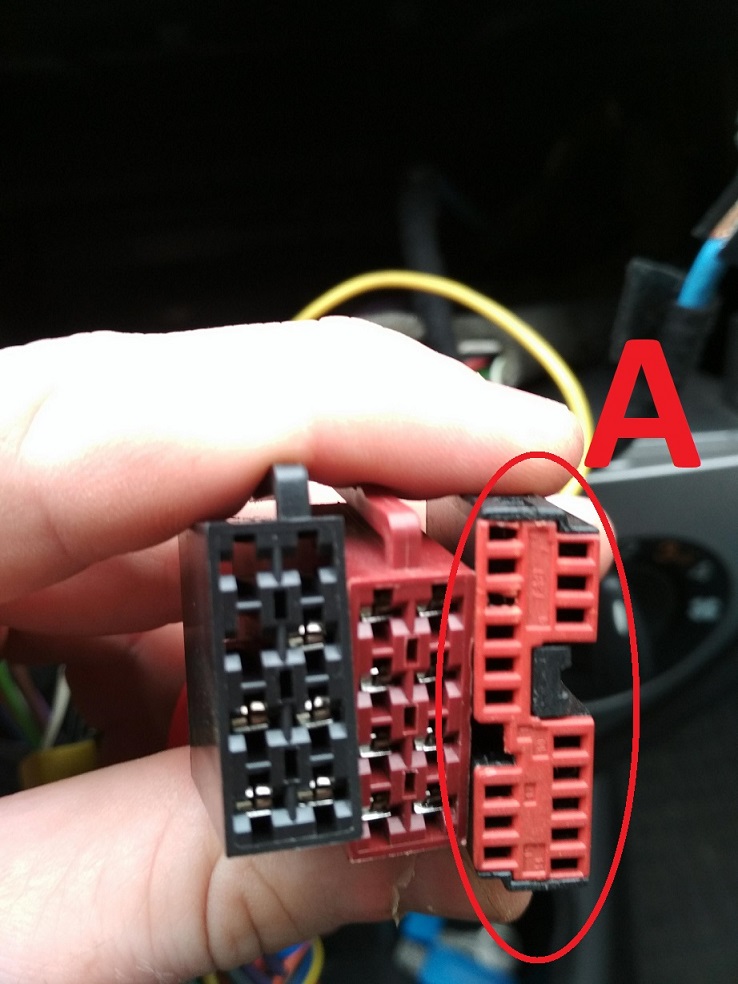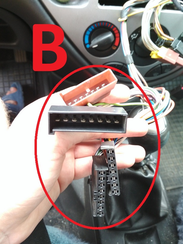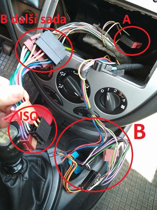 1) K čemu jsou ty konektory "B", viz obrázek? Co jsem koukal, tak úplně do stejných je zapojena redukce na ISO konektor pro klasický autorádia, ale proč je tam další svazek kabelů? To tam je nachystaný na dvě autorádia? To snad asi ne.