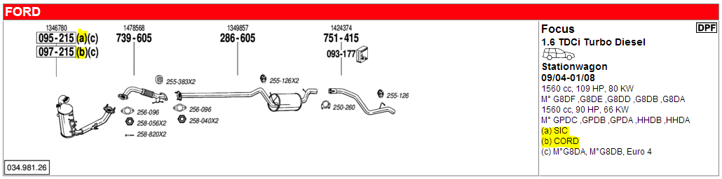 Rozdíl mezi DPF 095-215 a 097-215 od Bosalu je materiál filtru. Dražší 095-215 je vyrobený z karbidu křemíku (SiC) a díky lepší tepelné odolnosti má vyšší životnost. Levnější 097-215 je vyrobený z kordieritu, který je teplotně odolný do 1430 °C.