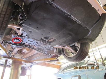 Zapíchnul se mi do toho roh plechovýho deklu kanálu, na označeným místě lehce se ohnul plech na spodku auta a pod kterým je něco, asi nějaké uložení nápravy. Má to růžovou barvu. Ohnutý okraj plechu jsem kladívkem a zvedákem vrátil zpět. Stav a poškození toho, co je uvnitř zkontroluju až nebude taková zima a bude na to čas.