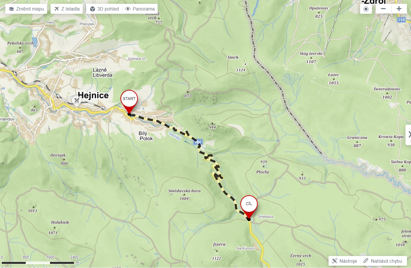 9:30 – odjezd z Liberce – směr Bílý potok (Obr.1 - GPS: 50.8742789N, 15.2184217E)