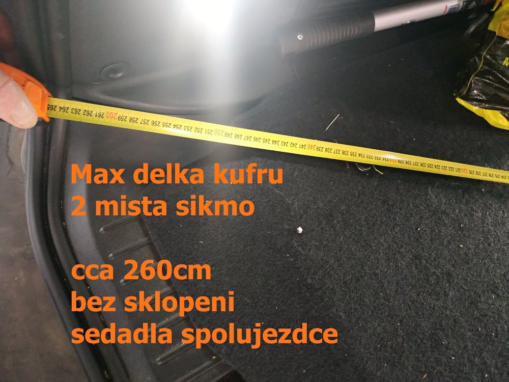 Trošku jsem si hrál při čekání na nábytek a tak snad někomu pomůže. Při velkém nepohodlí a dvou lidech skříně v krabicích nad 2m prevezete (3ks a nejdelší 203cm). Vyskládat kufr do výšky střední konzole pomůže pár cm, ale to jsem nepotřeboval.